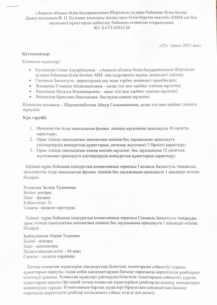 КГУ «Общеобразовательная школа им. В.П. Кузьмина села Дамса отдела образования по Шортандинскому району управления образования Акмолинской области»