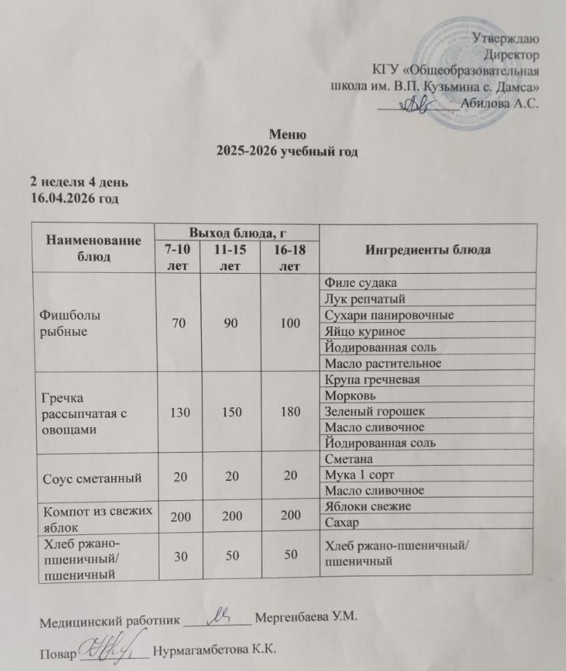 Мәзір 16.04.2026 ж.