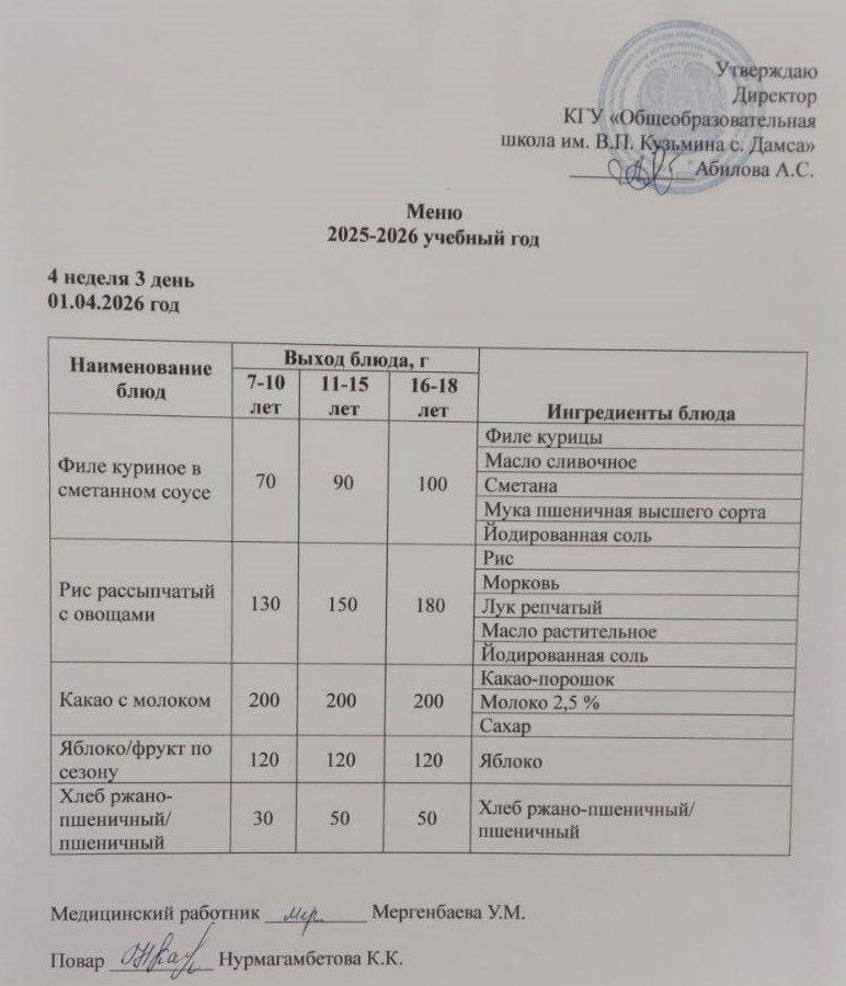 КГУ «Общеобразовательная школа им. В.П. Кузьмина села Дамса отдела образования по Шортандинскому району управления образования Акмолинской области»