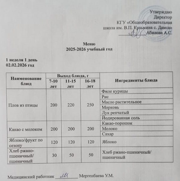 КГУ «Общеобразовательная школа им. В.П. Кузьмина села Дамса отдела образования по Шортандинскому району управления образования Акмолинской области»