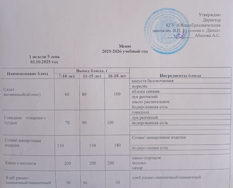КГУ «Общеобразовательная школа им. В.П. Кузьмина села Дамса отдела образования по Шортандинскому району управления образования Акмолинской области»