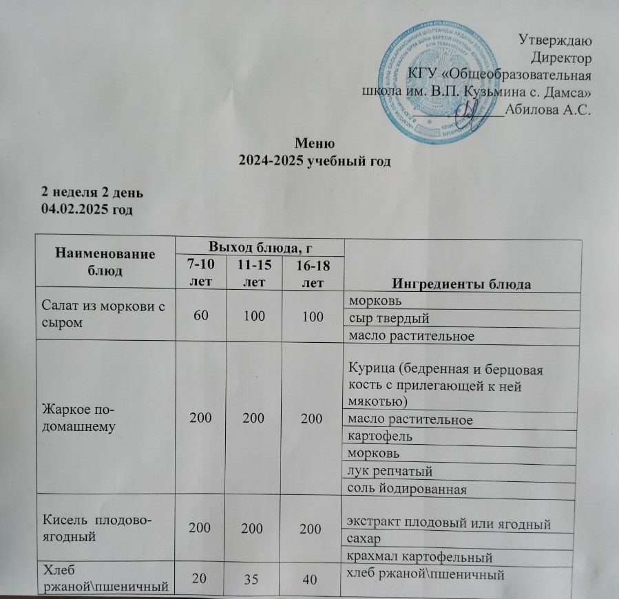 КГУ «Общеобразовательная школа им. В.П. Кузьмина села Дамса отдела образования по Шортандинскому району управления образования Акмолинской области»