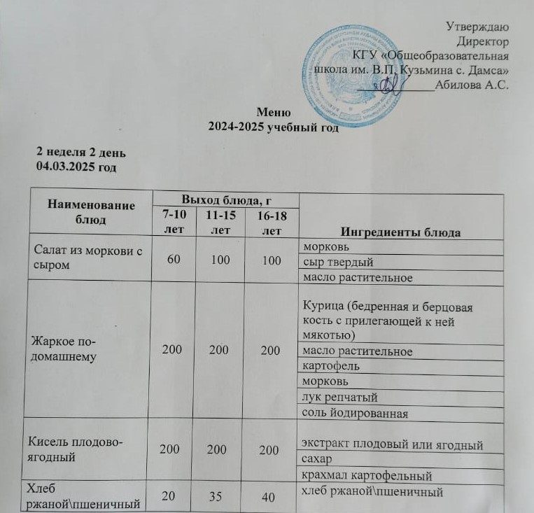 Меню на 04.03.2025 г.