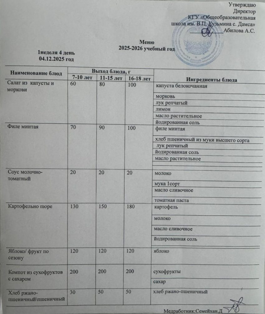 КГУ «Общеобразовательная школа им. В.П. Кузьмина села Дамса отдела образования по Шортандинскому району управления образования Акмолинской области»