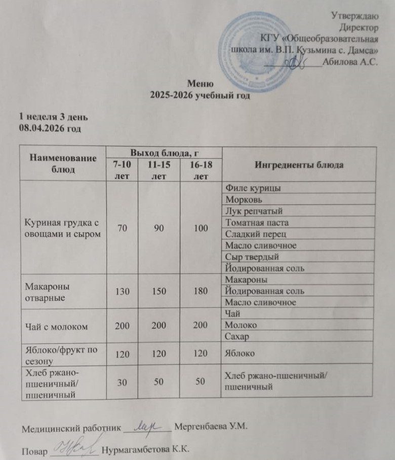 КГУ «Общеобразовательная школа им. В.П. Кузьмина села Дамса отдела образования по Шортандинскому району управления образования Акмолинской области»
