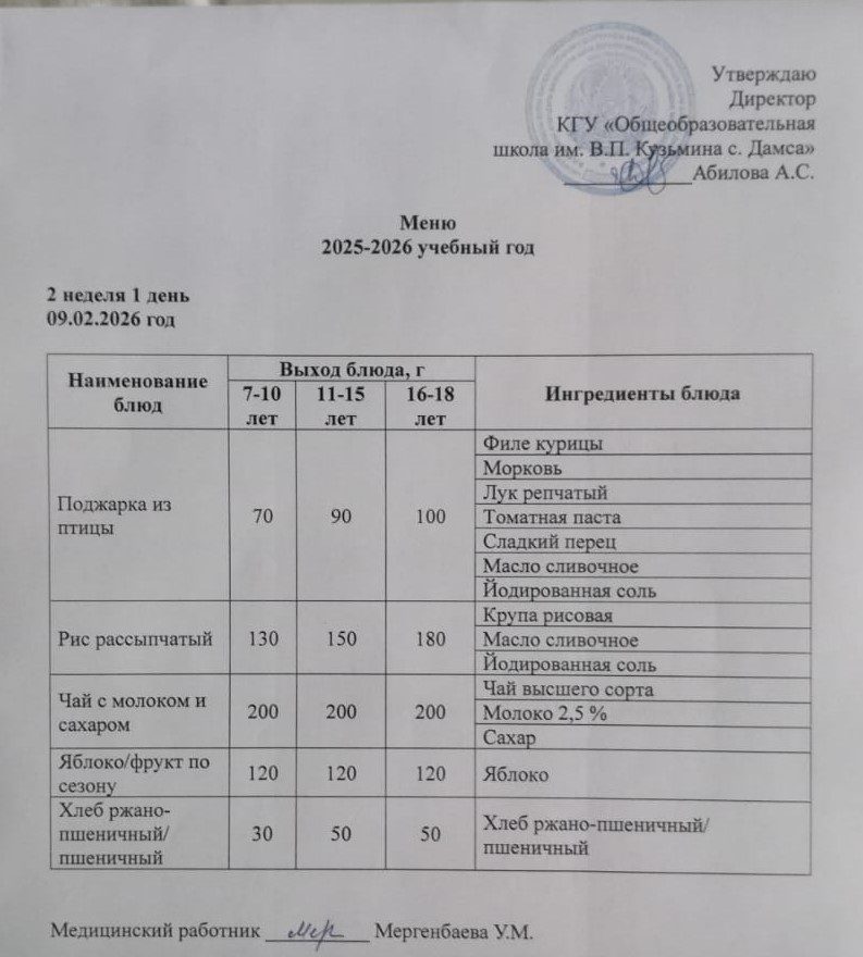 09.02.2026 күніне мәзір