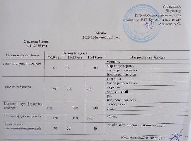 КГУ «Общеобразовательная школа им. В.П. Кузьмина села Дамса отдела образования по Шортандинскому району управления образования Акмолинской области»