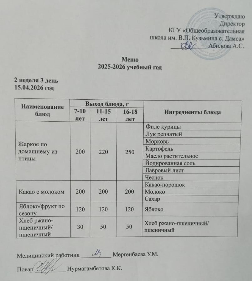 Мәзір 15.04.2026 ж.