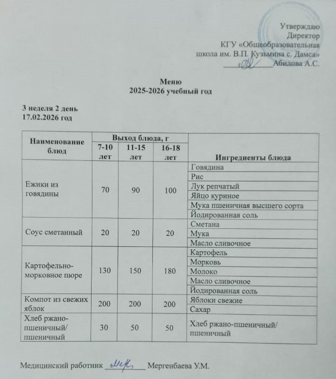 КГУ «Общеобразовательная школа им. В.П. Кузьмина села Дамса отдела образования по Шортандинскому району управления образования Акмолинской области»