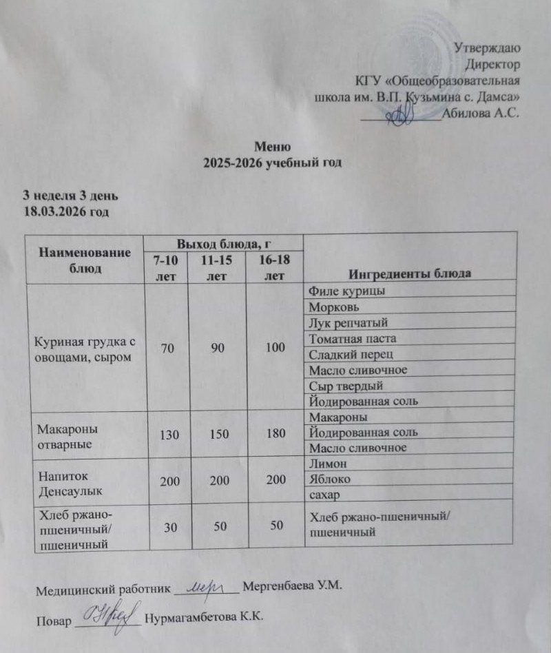 КГУ «Общеобразовательная школа им. В.П. Кузьмина села Дамса отдела образования по Шортандинскому району управления образования Акмолинской области»