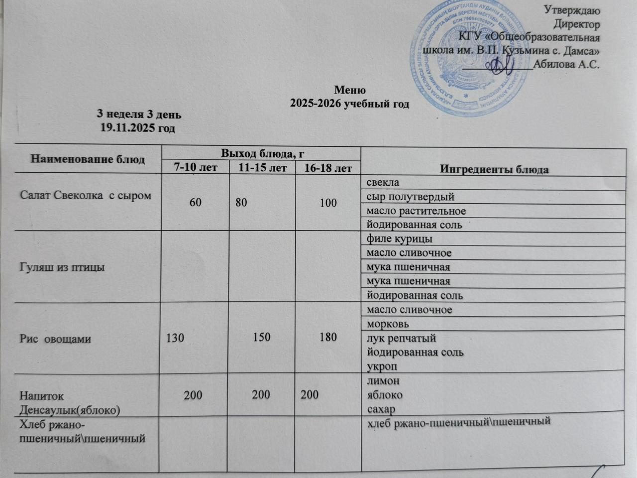 19.11.2025 күніне мәзір