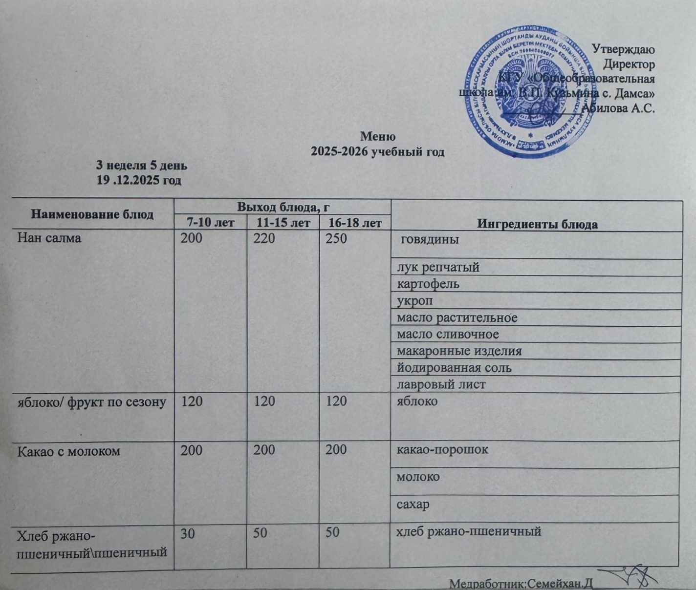 19.12.2025 күніне мәзір