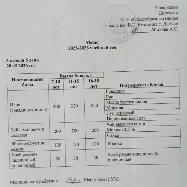 20.02.2026 күніне мәзір