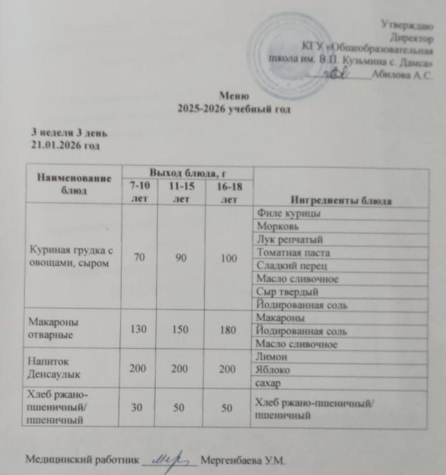 КГУ «Общеобразовательная школа им. В.П. Кузьмина села Дамса отдела образования по Шортандинскому району управления образования Акмолинской области»