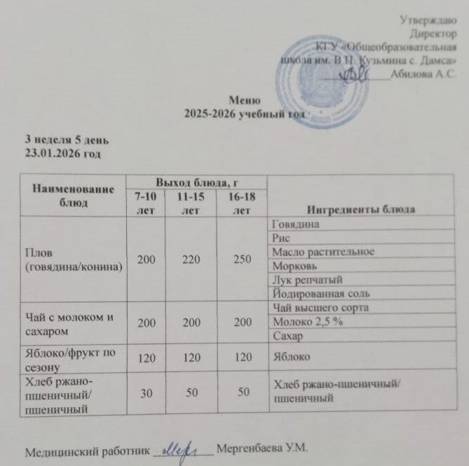23.01.2026 күніне мәзір