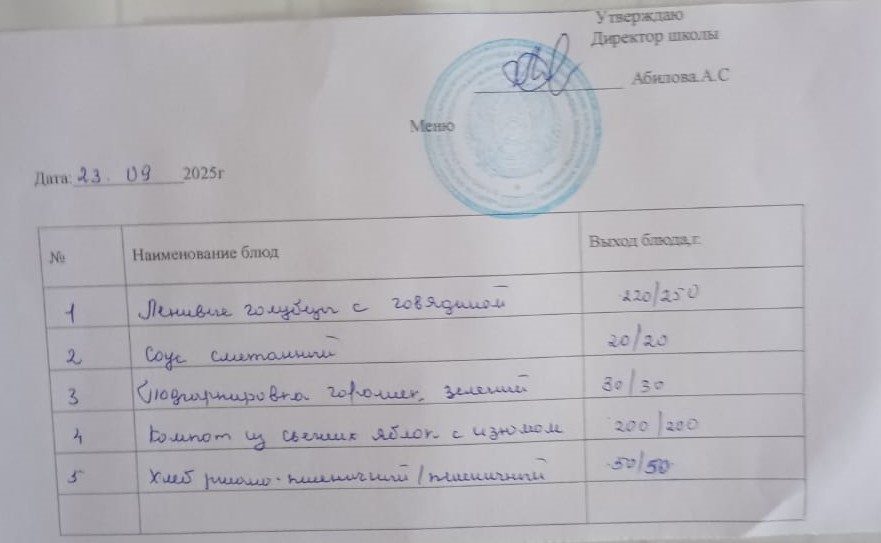 23.09.2025 күніне мәзір
