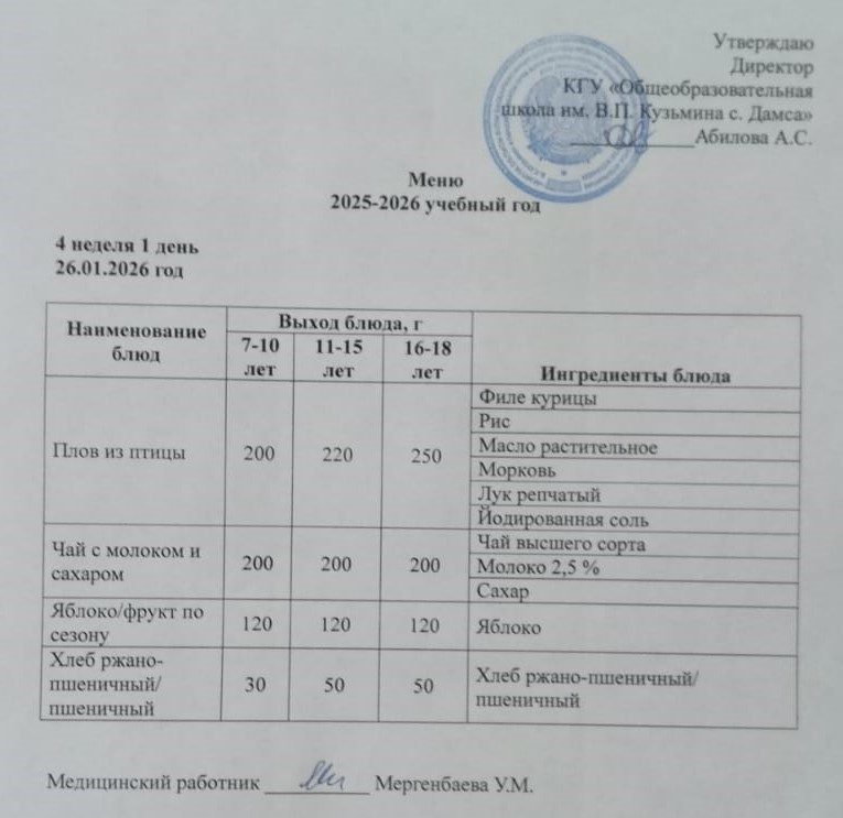 26.01.2026 күніне мәзір