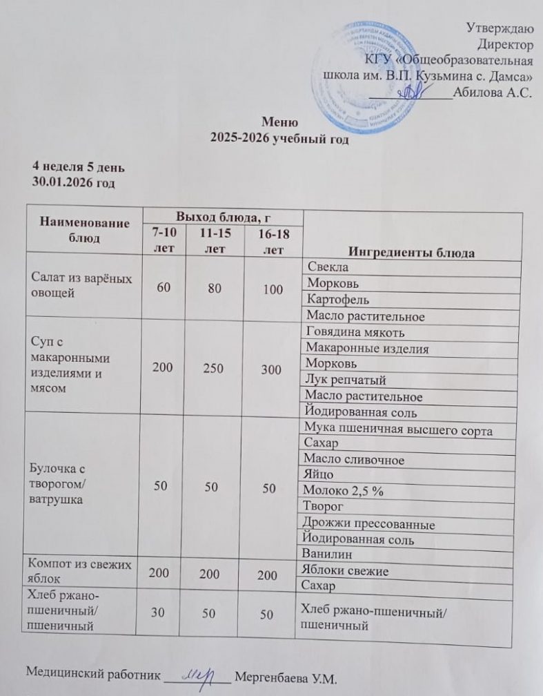 30.01.2026 күніне мәзір