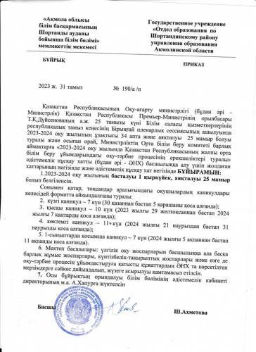 Приказ "О начале 2023-2024 учебного года"
