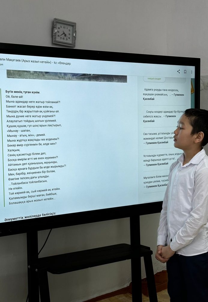 «Ақмола облысы білім басқармасының Шортанды ауданы бойынша білім бөлімі Дамса ауылының В.П. Кузьмин атындағы жалпы орта білім беретін мектебі» КММ. Мұқағали Мақатаевтың туған күніне арналған әңгіме.