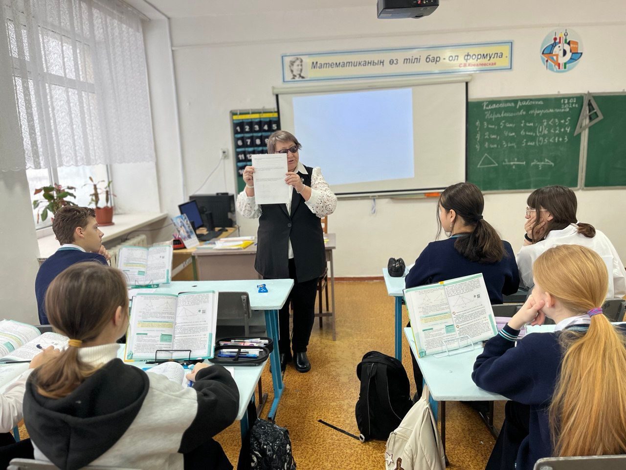 "Ақмола облысы білім басқармасының Шортанды ауданы бойынша білім бөлімі Дамса ауылының В.П. Кузьмин атындағы жалпы орта білім беретін мектебі" КММ. 7 "В" сыныптағы математика сабағы. Мұғалім: Баймуканова Мария Тадеевна.