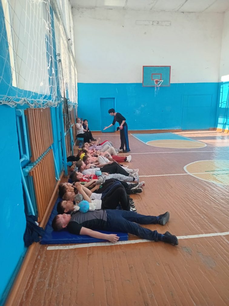 "Ақмола облысы білім басқармасының Шортанды ауданы бойынша білім бөлімі Дамса ауылының В.П. Кузьмин атындағы жалпы орта білім беретін мектебі" КММ. 3 "Б" сыныптағы дене шынықтыру сабағы. Мұғалім: Лащ Елена Пиусовна.